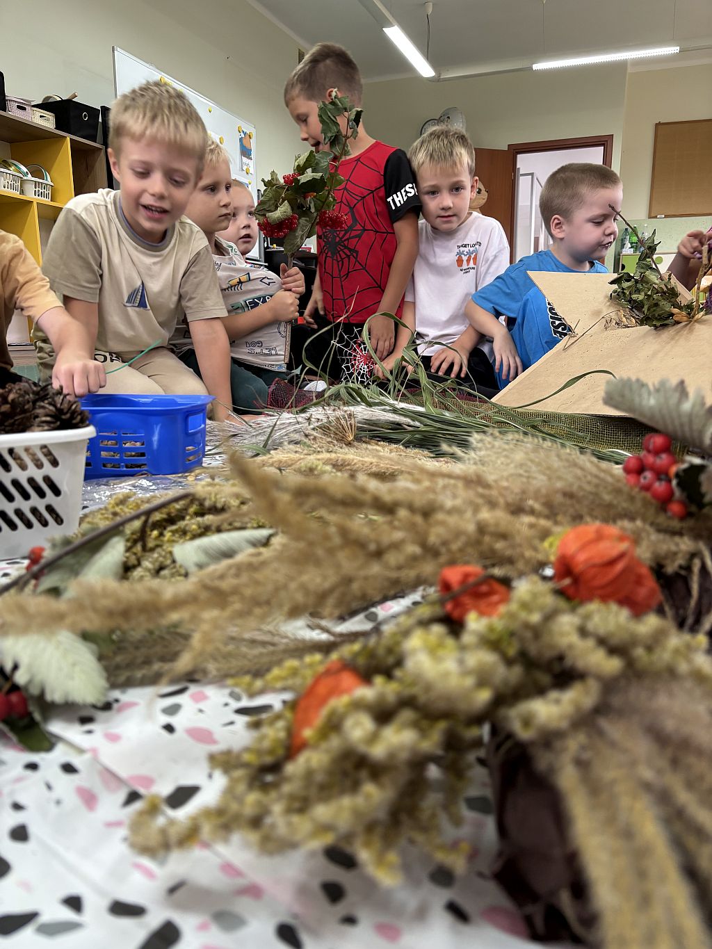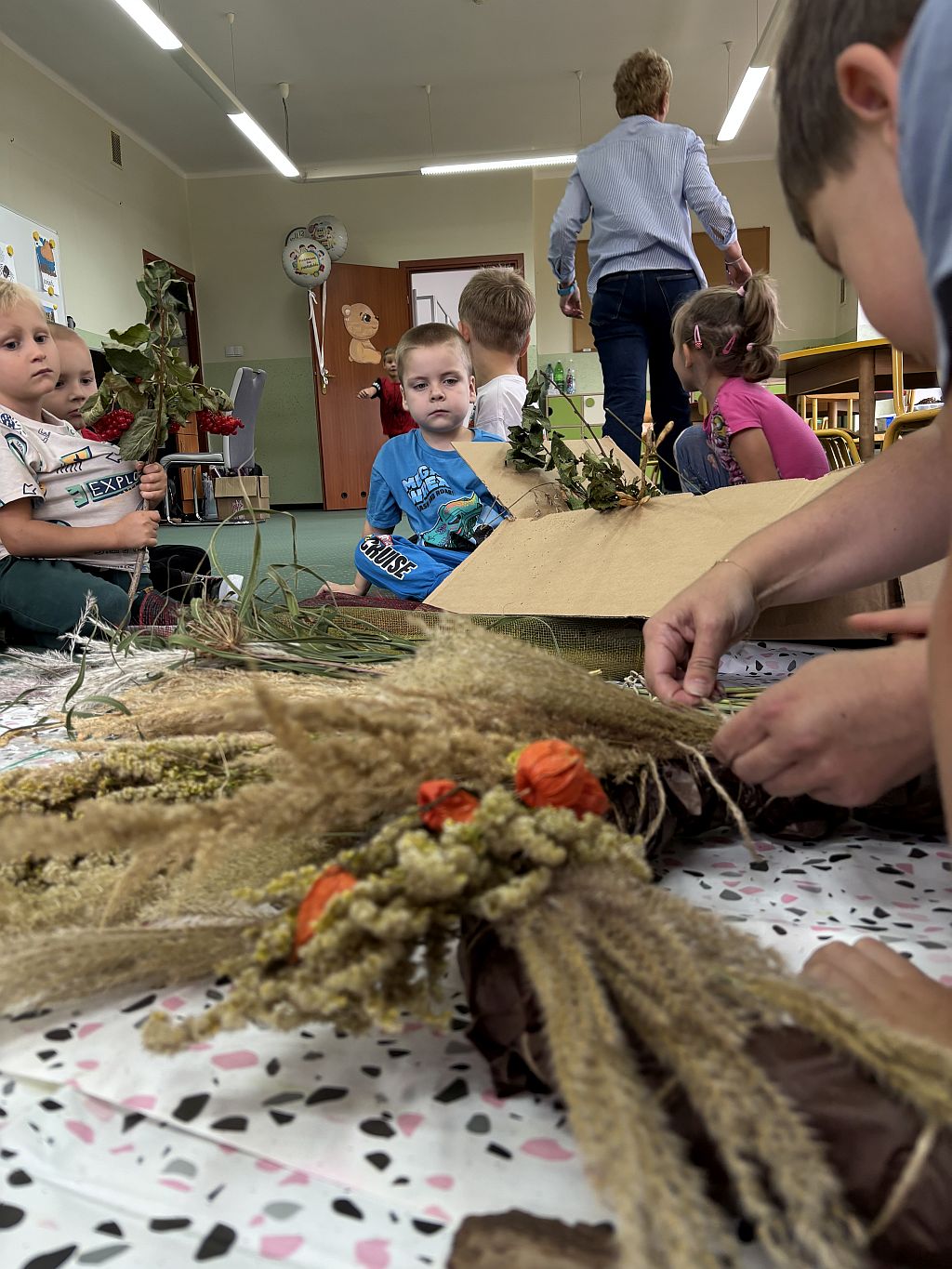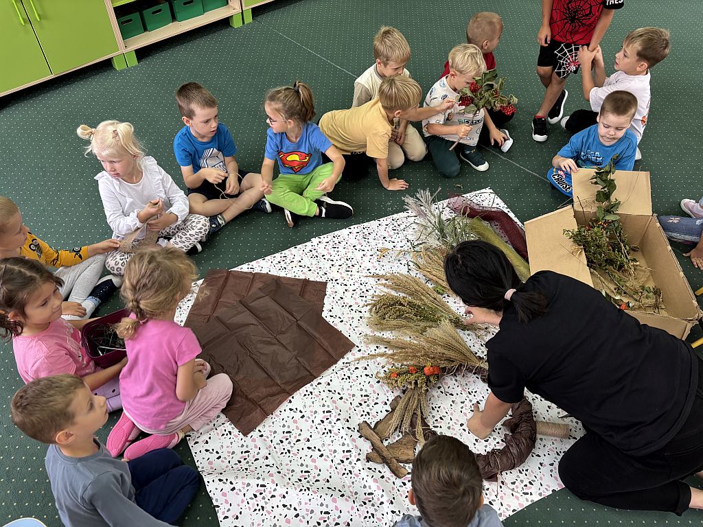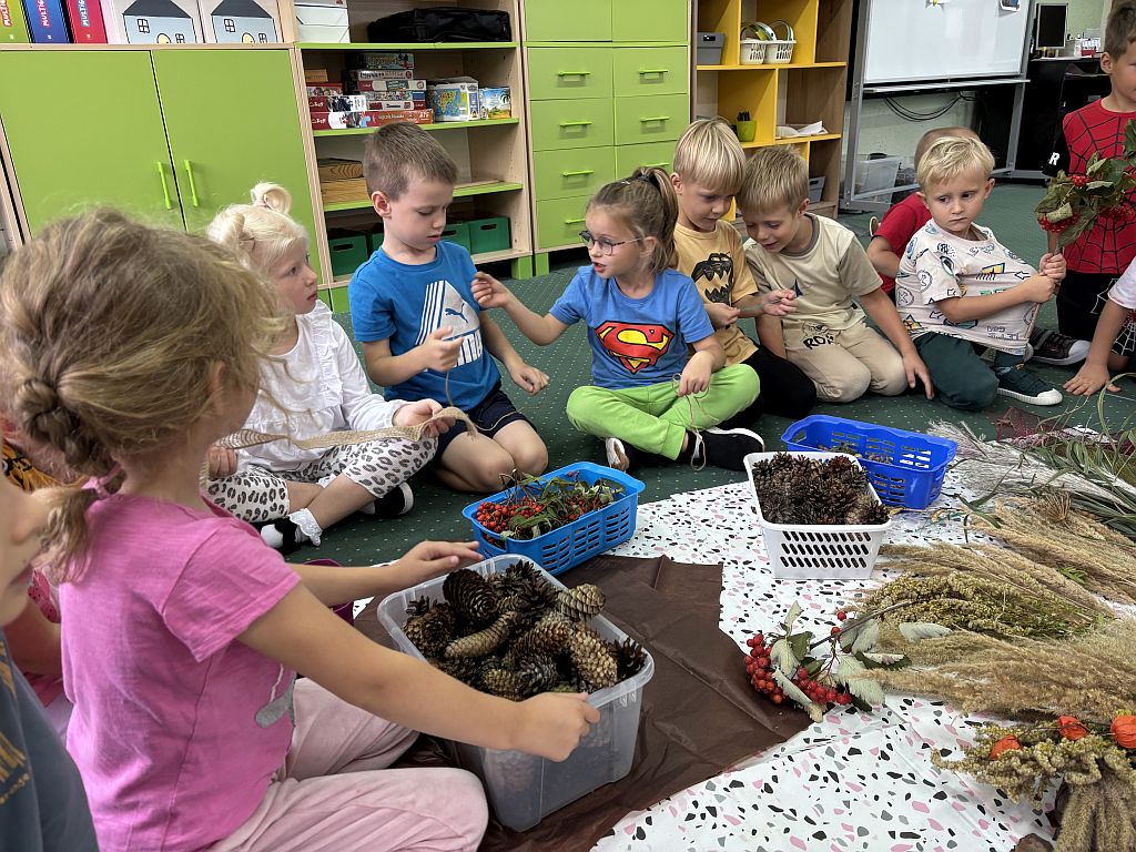 Jesień dotarła do naszego Przedszkola i (za pośrednictwem uczynnych rąk Rodziców) przyniosła nam prawdziwe skarby. Skwapliwie wykorzystujemy je w celach edukacyjnych, do zabaw matematycznych, konstrukcyjnych czy też prac plastyczno-technicznych. Dekorujemy też nasze sale i pomieszczenia przedszkolne, bo to co naturalne zawsze jest piękne i estetyczne. Zachęcamy Was do podobnych działań w swoich domach - zabawy kasztanami, żołędziami, liśćmi czy innymi skarbami znalezionymi w lesie lub na polanie doskonale rozwijają dziecięce zmysły, sprawność i koordynację. A synoptycy obiecują piękną, złotą polską jesień - wykorzystajmy ją więc!