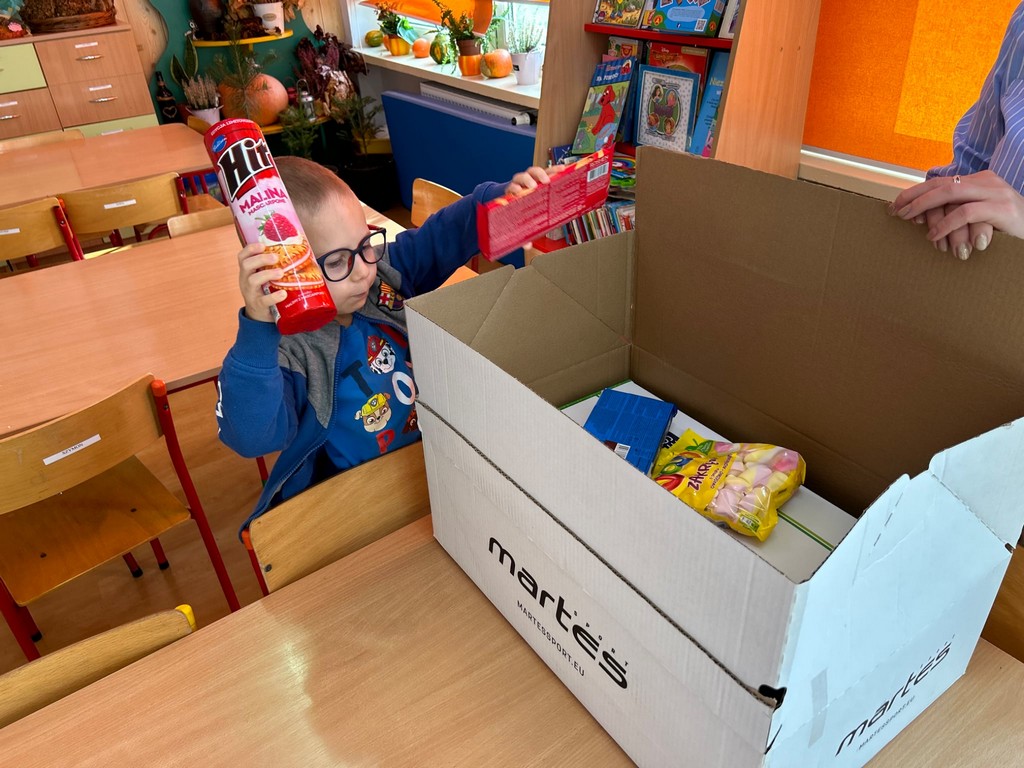 Skrzaty, wraz z panią Justyną, dołączyły w tym roku do Ogólnopolskiej akcji ,,Podaruj Gwiazdkę” w ramach której wsparły, nie tylko materialnie, dwie dziewczynki: dziesięcioletnią Nadię i ośmioletnią Julię z Ełku. Najpierw nasze Przedszkolaki dostały list, w którym dziewczynki nie prosiły o wiele. Najbardziej chciały by ich mamy wróciły, czego niestety Skrzaty nie mogły spełnić, ale mogły choć na chwilę wywołać uśmiech na twarzach dziewczynek, zakupując dla nich upragnione rolki, bluzkę, spodnie dzwony, sukienkę i dużo słodyczy. Jako część wkładu każde dziecko przyniosło swój ,,dar serca" - symboliczne 5 zł, przeznaczone na zakup rzeczy z listy życzeń dziewczynek. Na koniec wspólnie zapakowali prezenty i zanieśli je do punktu nadania paczek. Wiemy, że dotarły już one do ośrodka i czekają na wręczenie Nadii i Lence.