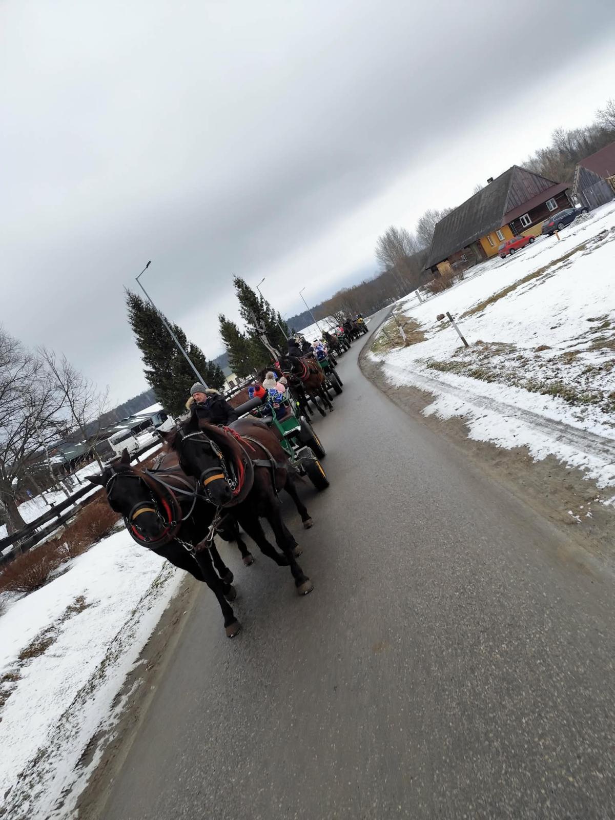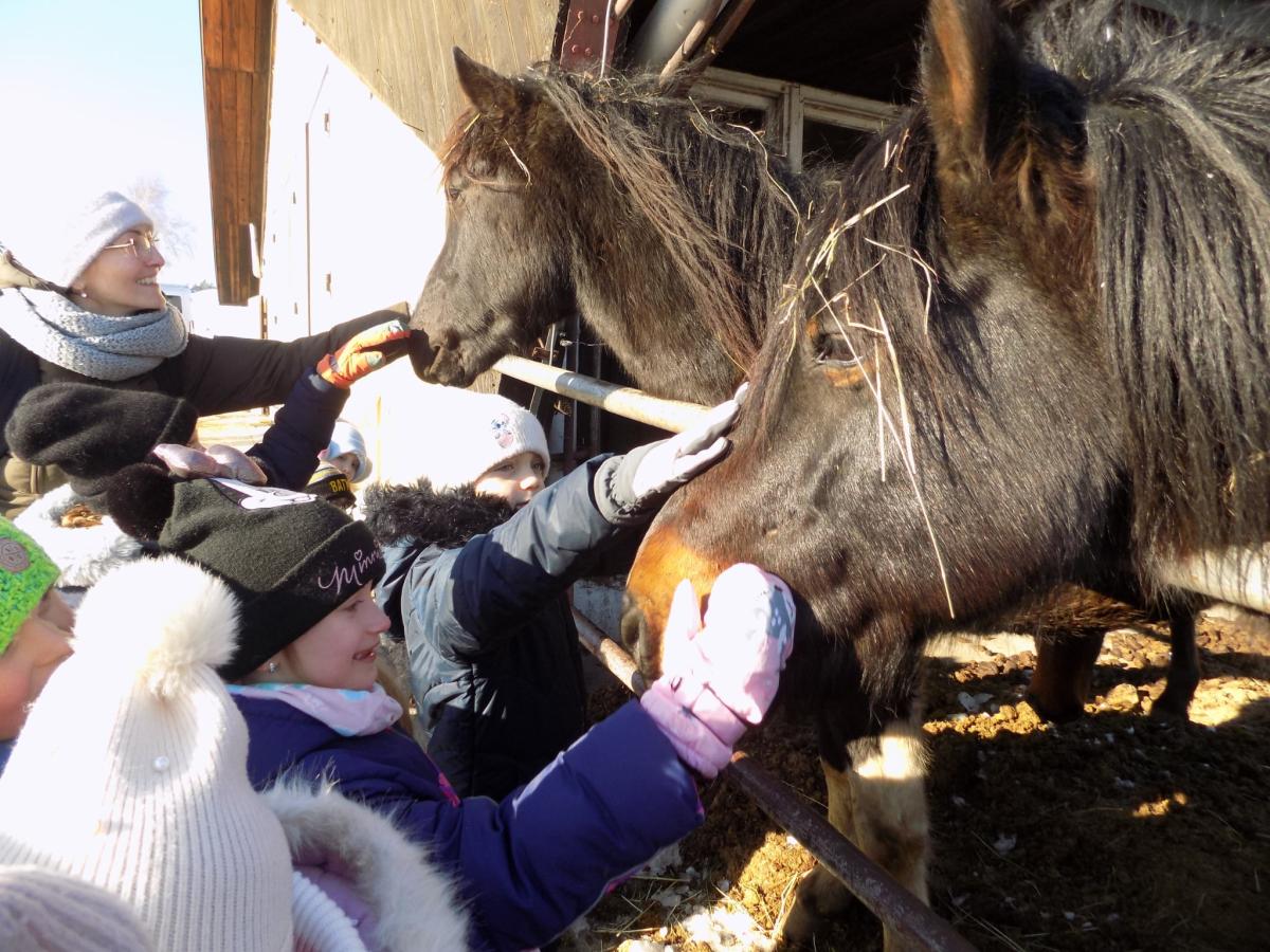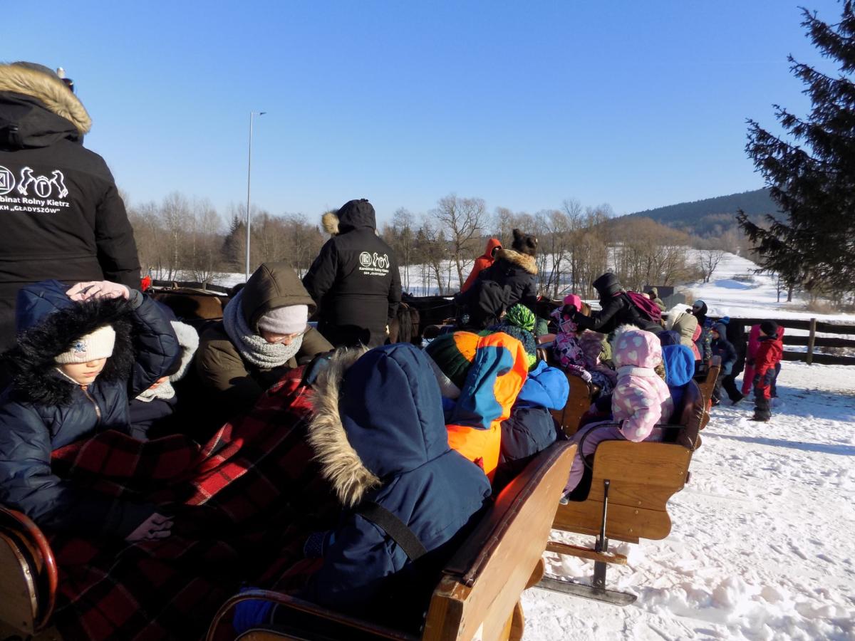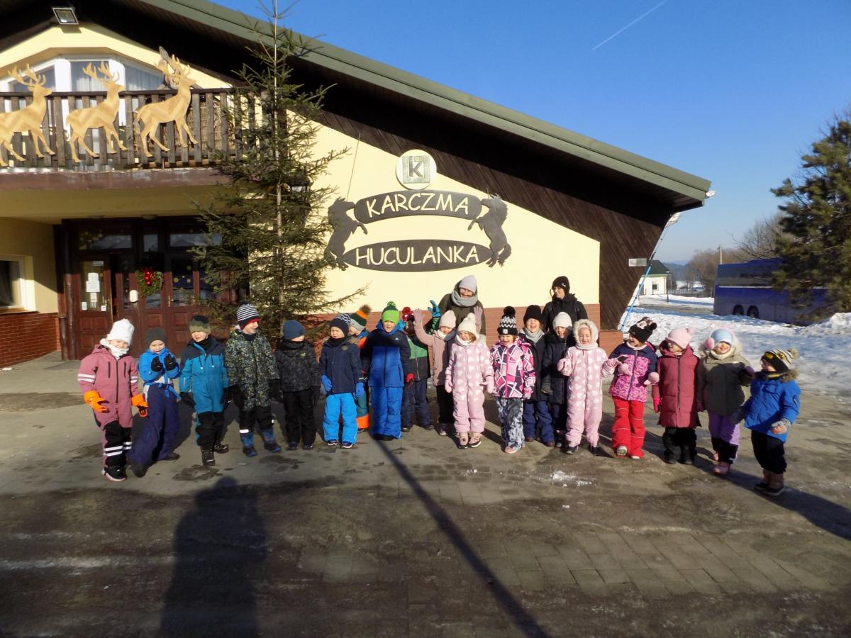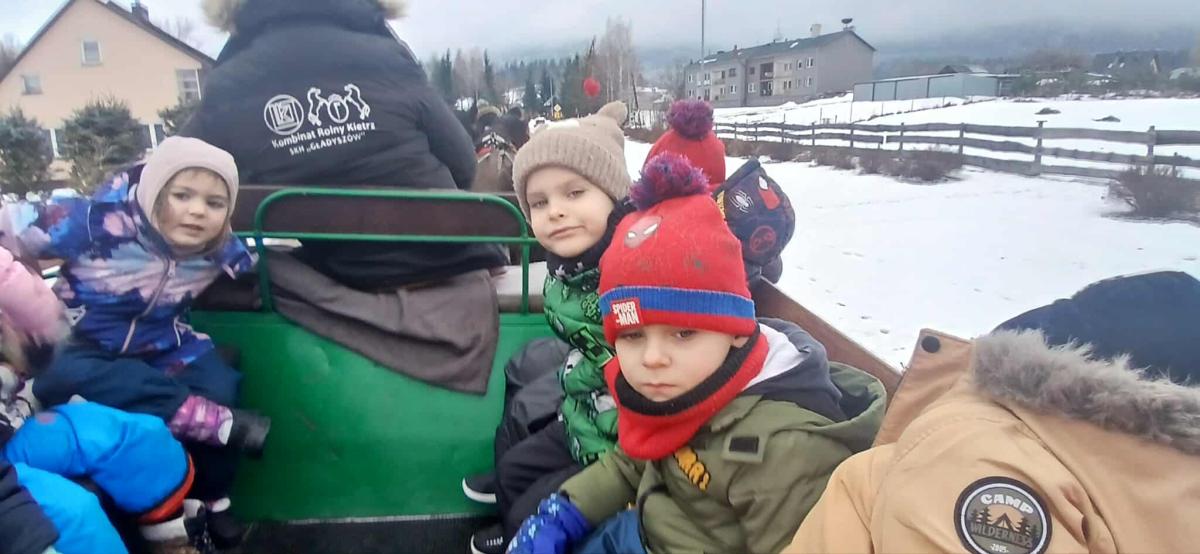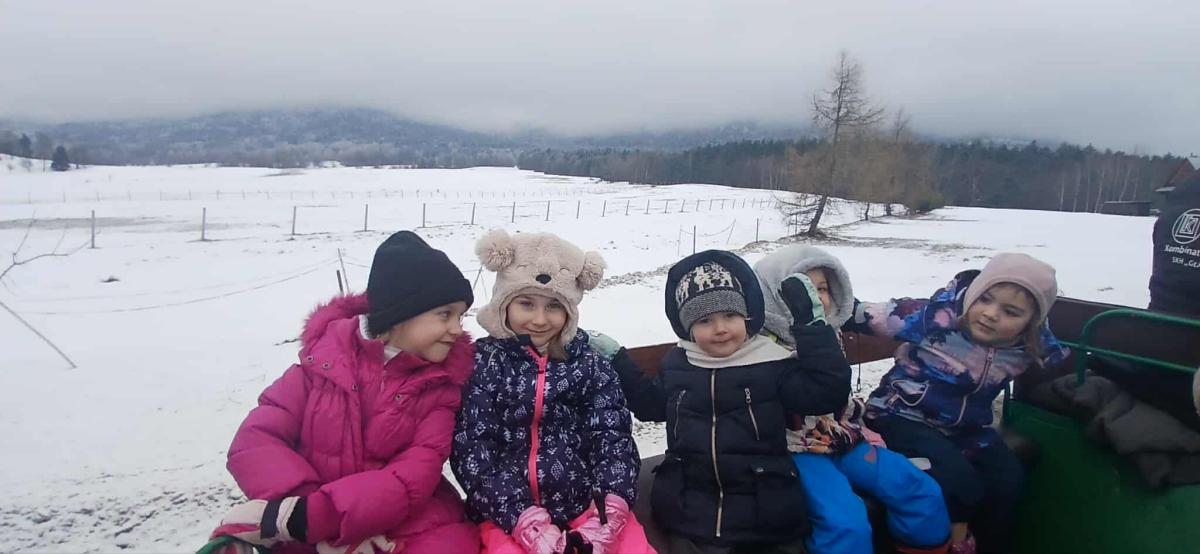 20 stycznia Skrzaty, a w piątek Sówki, Muchomorki, Misie i Pszczółki wzięły udział w kuligu w Stadninie Koni Huculskich "Gładyszów" w Regietowie. Oprócz przejażdżki dzieci miały możliwość zwiedzenia stadniny oraz skosztowania pysznych, pieczonych kiełbasek. To jak będzie z tą zimą? Odpuści, czy jeszcze z nami zostanie?