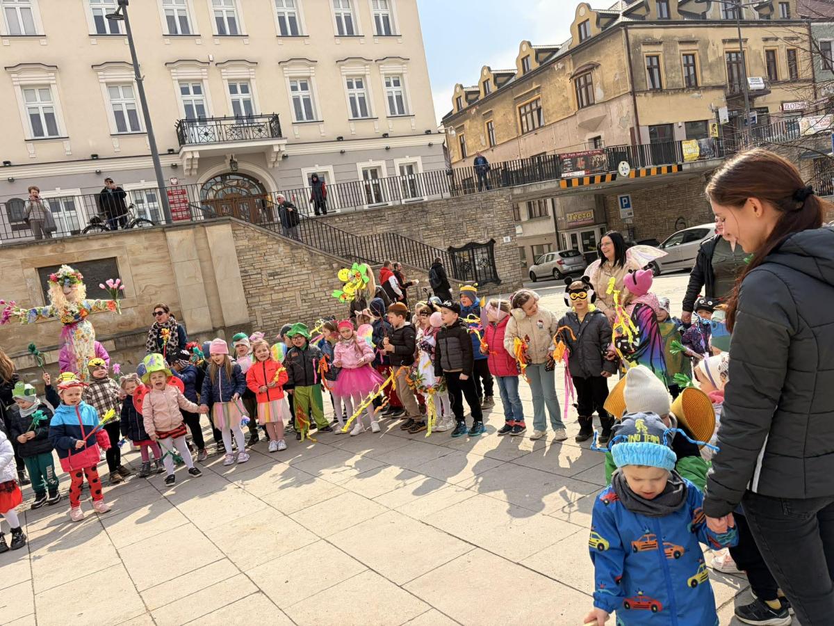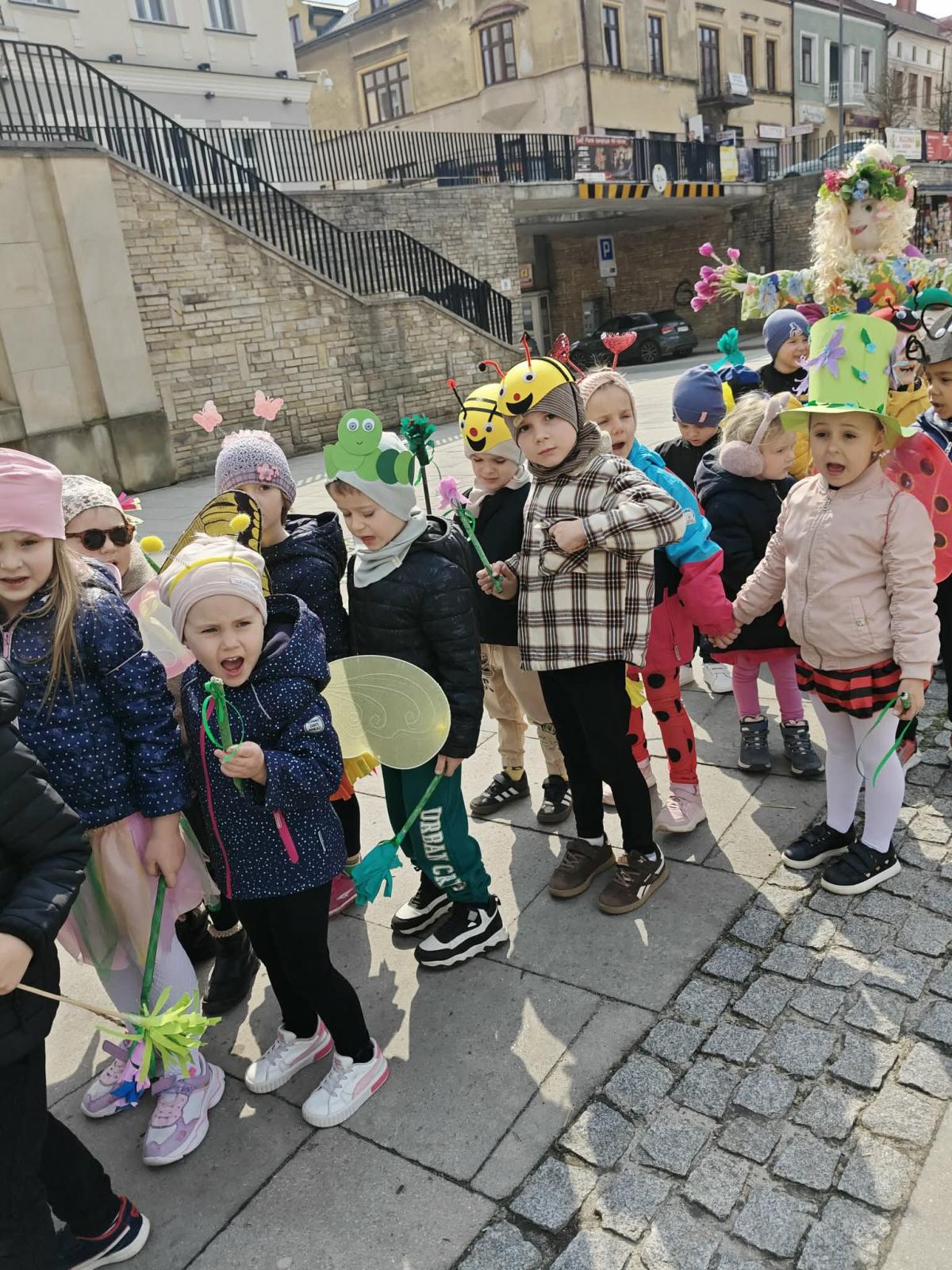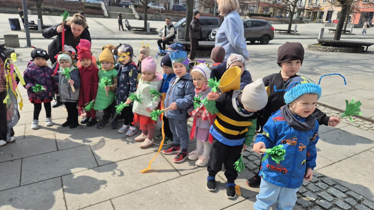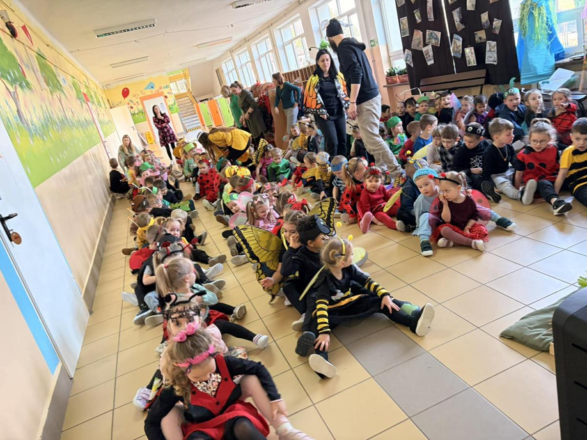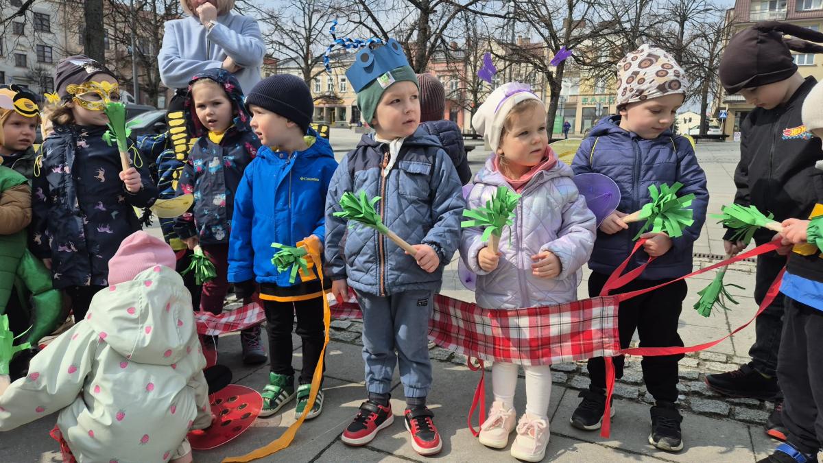 20 marca dzieci z Miejskiego Przedszkola nr 5 z przytupem przywitały wiosnę! W tym dniu nasze Przedszkolaki przebrały się za... robaczki. Ale nie takie zwykłe, tylko te, z kolekcji ks. Bronisława Świeykowskiego, które na co dzień możemy oglądać na gorlickich muralach. Dzień rozpoczął się przepysznym śniadaniem w formie stołu szwedzkiego. Taka forma sprzyja zaznajamianiu dzieci z nowymi smakami i z pewnością stanowi dla nich nie lada atrakcję. Po wspólnych zabawach w przedszkolnym korytarzu wręczono pamiątkowe dyplomy za zdjęcia murali wykonane przez dzieci i ich rodziców. Po drugim śniadaniu (również w formie szwedzkiego, tym razem owocowego stołu) wszystkie grupy udały się na gorlicki Rynek, gdzie śpiewem powitały wiosnę i pożegnały zimę.