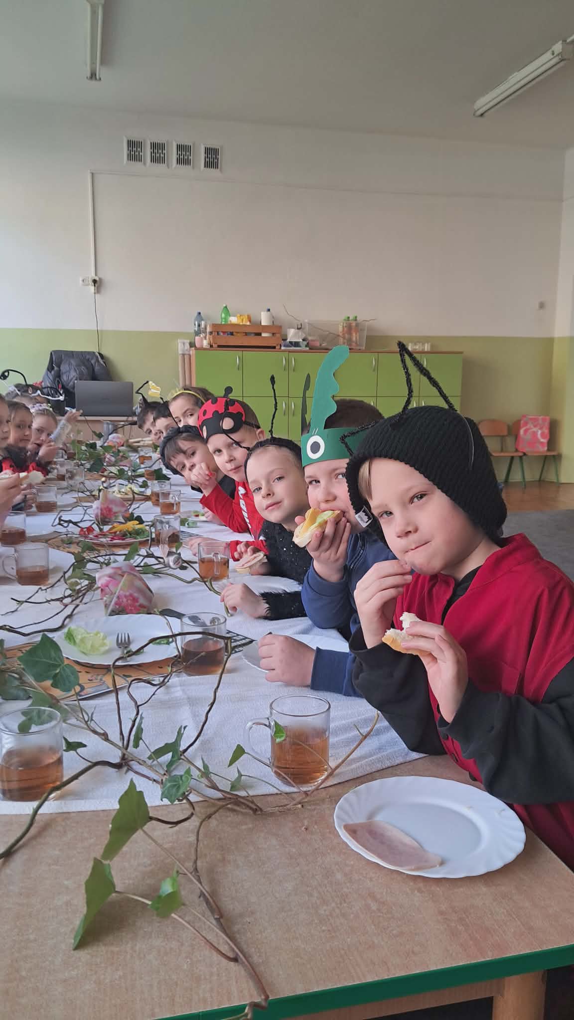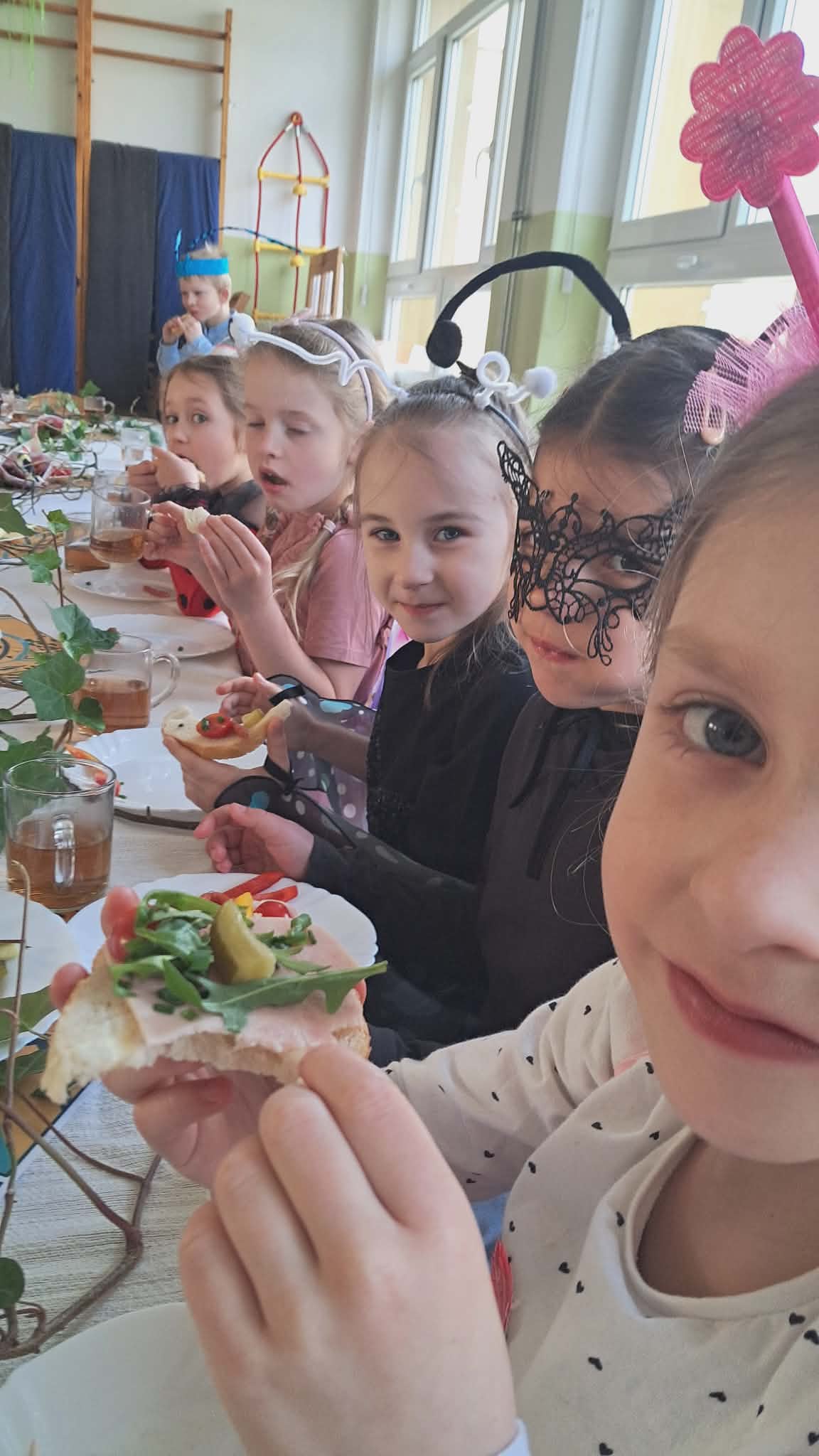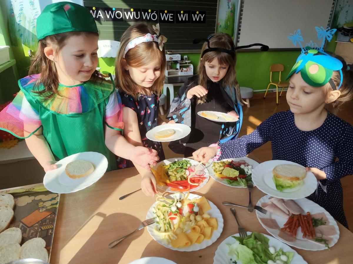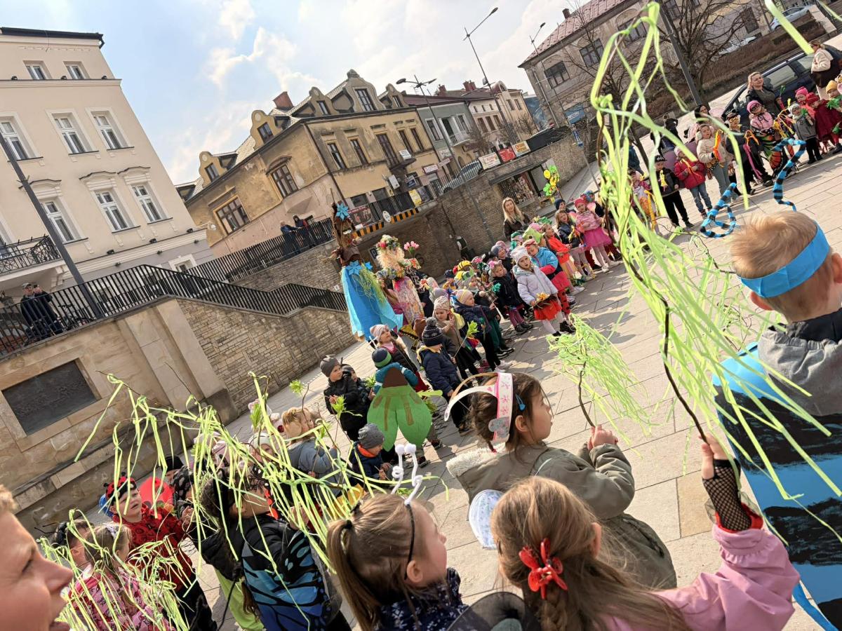 20 marca dzieci z Miejskiego Przedszkola nr 5 z przytupem przywitały wiosnę! W tym dniu nasze Przedszkolaki przebrały się za... robaczki. Ale nie takie zwykłe, tylko te, z kolekcji ks. Bronisława Świeykowskiego, które na co dzień możemy oglądać na gorlickich muralach. Dzień rozpoczął się przepysznym śniadaniem w formie stołu szwedzkiego. Taka forma sprzyja zaznajamianiu dzieci z nowymi smakami i z pewnością stanowi dla nich nie lada atrakcję. Po wspólnych zabawach w przedszkolnym korytarzu wręczono pamiątkowe dyplomy za zdjęcia murali wykonane przez dzieci i ich rodziców. Po drugim śniadaniu (również w formie szwedzkiego, tym razem owocowego stołu) wszystkie grupy udały się na gorlicki Rynek, gdzie śpiewem powitały wiosnę i pożegnały zimę.